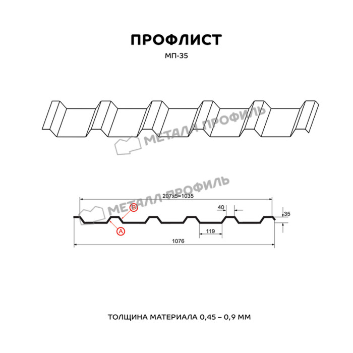 Профлист Металл-Профиль МП-35 Полиэстер 0.45 мм RAL 9002 Серо-белый
